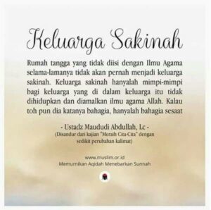 Keluarga sakinah adalah konsep rumah tangga ideal dalam Islam yang dibangun di atas pernikahan sah, berlandaskan iman, serta diliputi ketenangan (sakinah), rasa cinta (mawaddah), dan kasih sayang (warahmah)