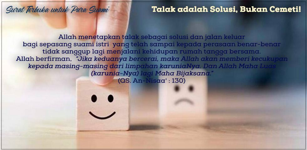 Berlaku lemah-lembutlah terhadap istrimu! Karena sesungguhnya Allah ﷻ mensyari’atkan talak untuk rahmat, bukan siksa. Jangan lagi bermain api, dan menjadikan senjata di pinggang sebagai hiburan! Sungguh, itu semua bukan perbuatan orang-orang baik. Surat Terbuka untuk Para Suami