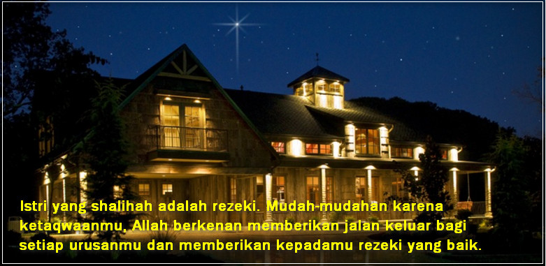 Istri yang shalihah adalah rezeki. Mudah-mudahan karena ketaqwaanmu, Allah ﷻ berkenan memberikan jalan keluar bagi setiap urusanmu dan memberikan kepadamu rezeki yang baik.